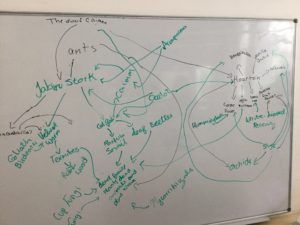Based on their OWN CURIOSITIES AND INTEREST, students are researching their own ecosystems and are now starting to build food webs to try and connect their 50+ species to see if their ecosystems are biodiverse.